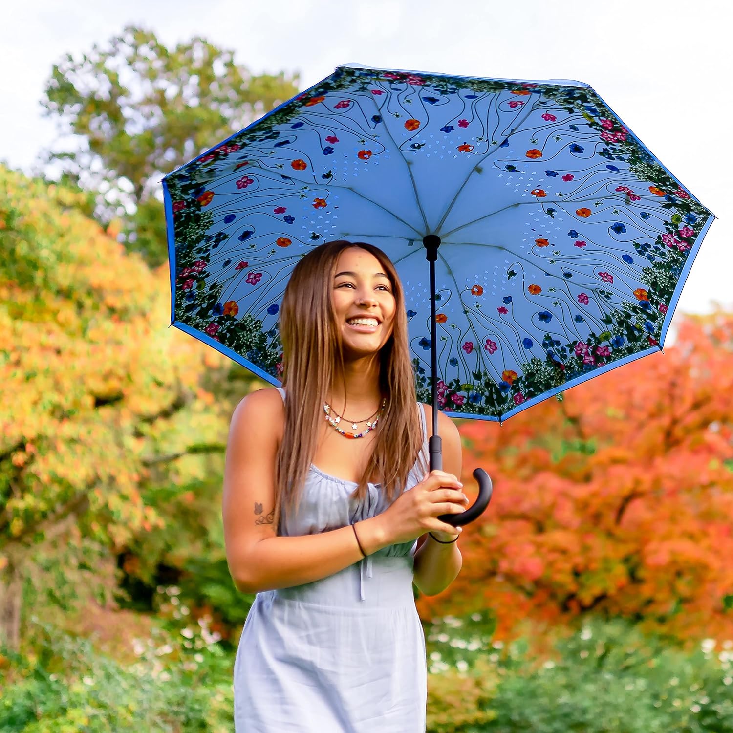 Totes InBrella – Reverse Close Umbrella with Invisible Water Repellent Coating – Auto Close, Inverted, Dripless, and Stormproof for Rainy Weather(Flower Garden)
