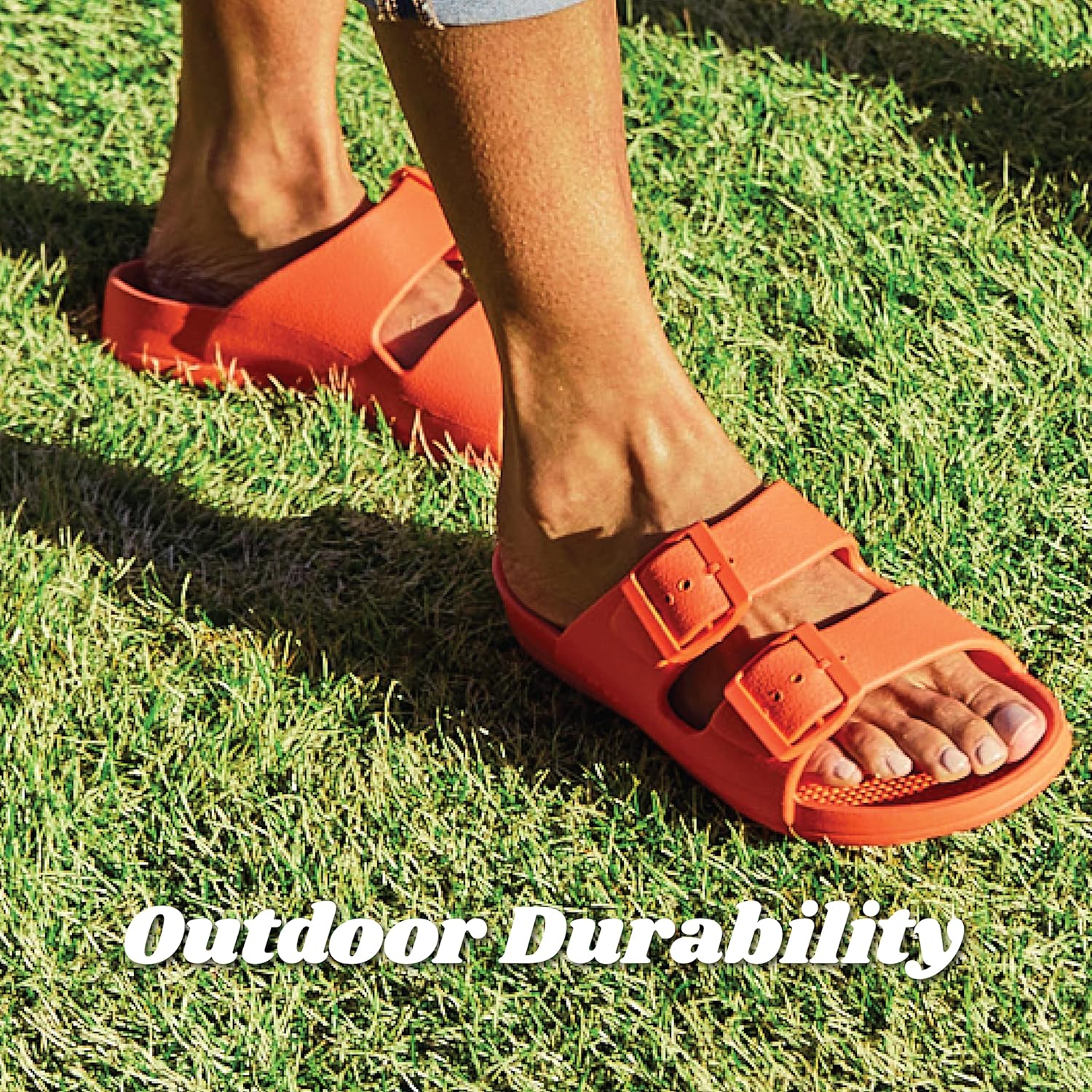 Vacation, meet your new best friend with the totes Women's Double Buckle Adjustable Slide! Seemlessly transition from a day at the beach to a night under the stars with these ultra versatile and adjustable slides! Made from our light as air, revolutionary Everywear technology, these sandals are super durable while remaining as bouncy and supportive as the day you bought them. They're so comfy, you'll want to wear them Everywear!